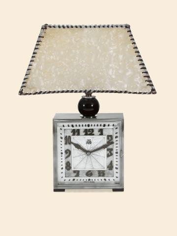 ENGLISH ART DECO FLOOR LAMP c. 1930, mahogany, single three-way socket, fabric over paper shade,...Art Deco Desk Clock & Chrome Figural Dancer 2p LOT3 hrs LeftJulie Keramik, Danish Modern, Brown Ceramic, Table Lamp, Denmark, 1960sArt Deco Desk Table Lamp with Bell Shaped Glass ShadeA CARTIER ART DECO CORAL, DIAMOND AND ENAMEL ROCK CRYSTAL TABLE CLOCK PARIS, CIRCA 1925Feb 13, 2026Art Deco Era Figural Bronzed Table Lamp Frankart School Style Circa 19202 days LeftA late 19th century lacquered-brass striking carriage clock with repeat Atribuited to Henri Jac...Tall Table Lamp with Shade by Wildwood Circa 1990s4 days LeftArt Deco Bakelite Mantel Clock2 days LeftArt Deco Underwriters Lab Lamp Clock3 hrs LeftAntique Pairpoint Leaded Glass Table Lamp Art Deco 1900-19202 days LeftLucite Cat Tail Lamp With Capiz Shade by M C M Circa 80sAntique Art Nouveau Slag Glass Table Lamp in the Manner of Handel, Circa 1920sFeb 17, 2026Vintage French Louis XV Bronze Crystal Table Lamp 1950s6 days LeftART DECO GILT BRONZED CLOCK LAMP2 days LeftCartier Art Deco Bronze Travel Clock on Pivot Base3 days Left