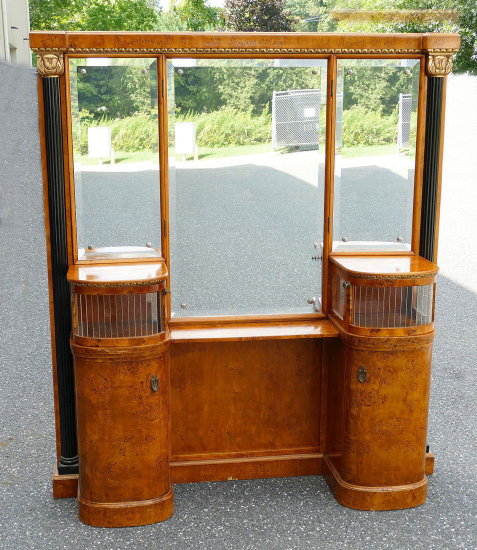 Art Deco Burl Triptych Mirrored Dressing Table