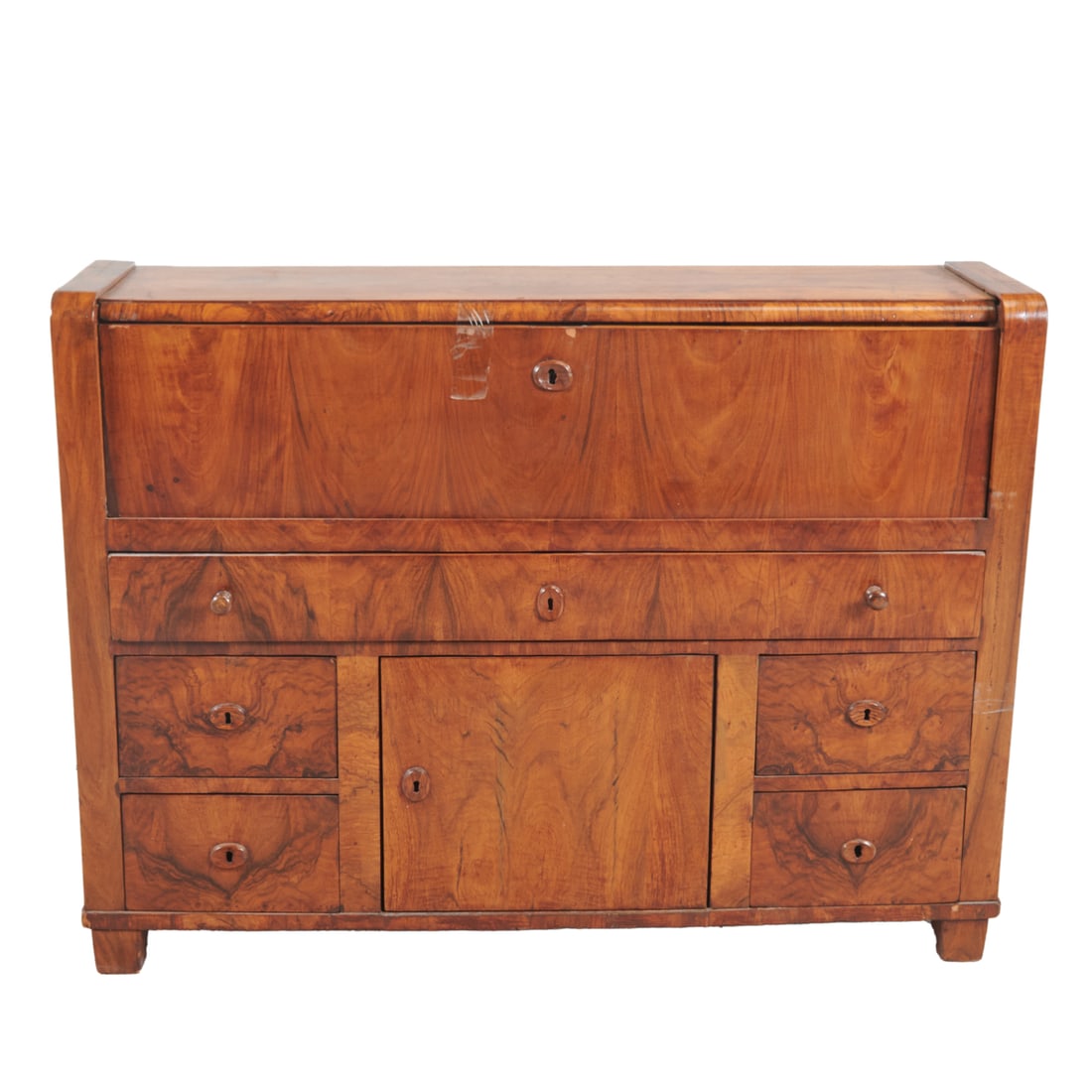 Art Deco Burl Walnut Drop Front Desk