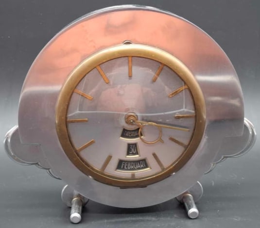 Antique German Domed Anniversary Clock c.1900French white Art Deco alarm Clock JapyAntique Brass Carriage Clock with Travel Case, c.1910 – Swiss MovementArt Deco Amber Bakelite Body & Stand With Chrome Bezel And Accents Electric ClockMar 15, 2026Vintage Glass Mirror Deco Sessions Electric Shelf Clock Working 8 by 88 hrs LeftArt Deco Mirrored Wall Clock6 days LeftJefferson Golden Hour Clock3 days LeftJaeger-LeCoultre Atmos Clock4 days LeftGubelin Art Deco Half Round Desk Clock3 days LeftA copper-gilt temperature difference dynamic air clockMar 21, 2026Vintage Master Crafters Atmos Style Electric Clock, Made in U.S.A.Mar 01, 2026BRITISH PURE SILVER SMALL TABLE CLOCKMar 03, 2026VINTAGE GERMAN ART DECO TABLE CHIME CLOCK BY JUBAMar 08, 2026Vintage Hotpoint Electric Range Timer Clock, GE Telechron, UntestedMar 05, 2026VINTAGE SOVIET SVET ELECTROMECHANICAL MANTEL CLOCKMar 08, 2026Chrome Art Deco "Chrono Lite-12" Commercial Neon Wall Clock by Seth Thomas, CirMar 20, 2026