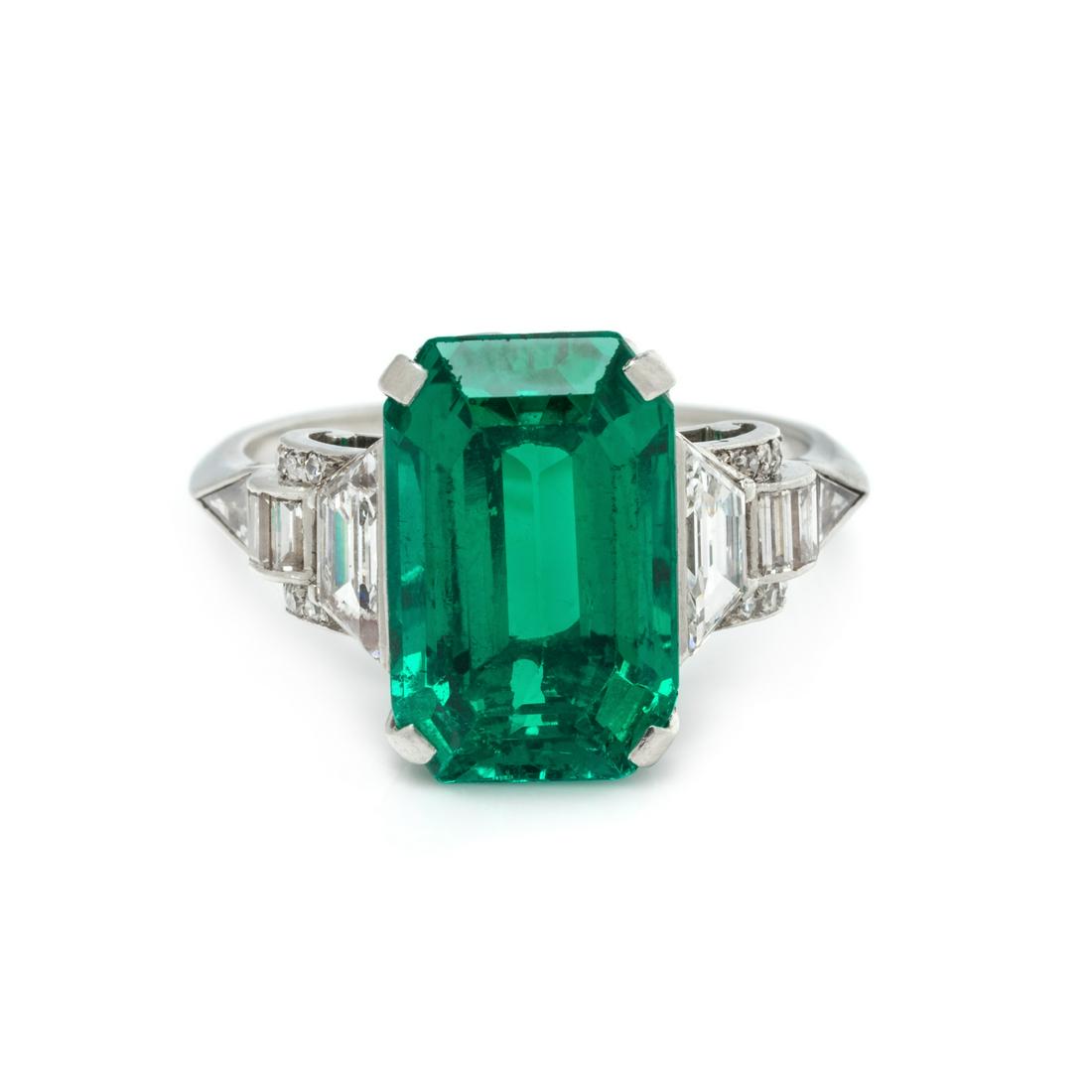 ART DECO, COLOMBIAN EMERALD AND DIAMOND RING