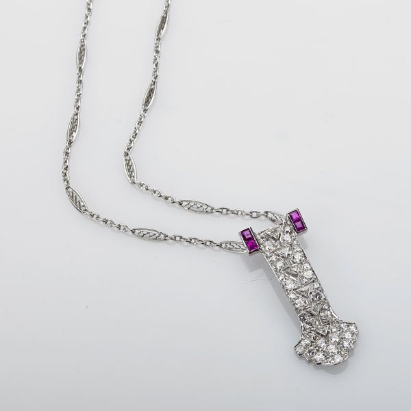 Art Deco Platinum Pendant Necklace with Natural Pearl Diamond Sapphire and Burma RubyDiamond Depot4.3(10)$2,6503 days Left