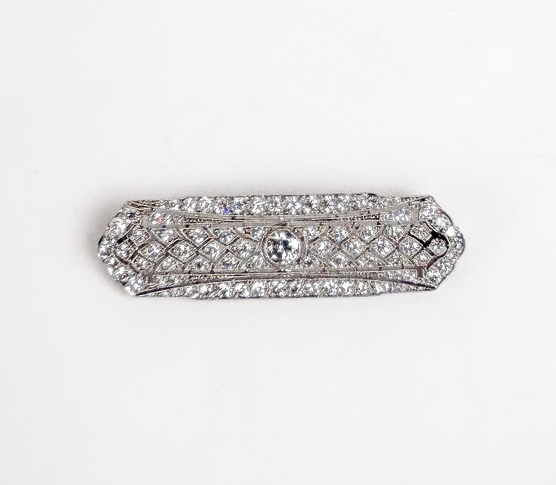 Art Deco Platinum Brooch with 8.60 Ct Diamonds I Color SI1 ClarityMynt Auctions4.4(831)$1005 days Left