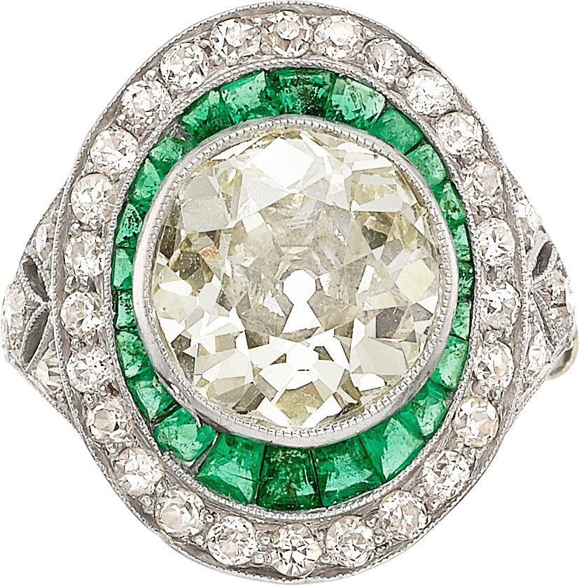 Art Deco Diamond, Emerald, Platinum Ring The ring feat
