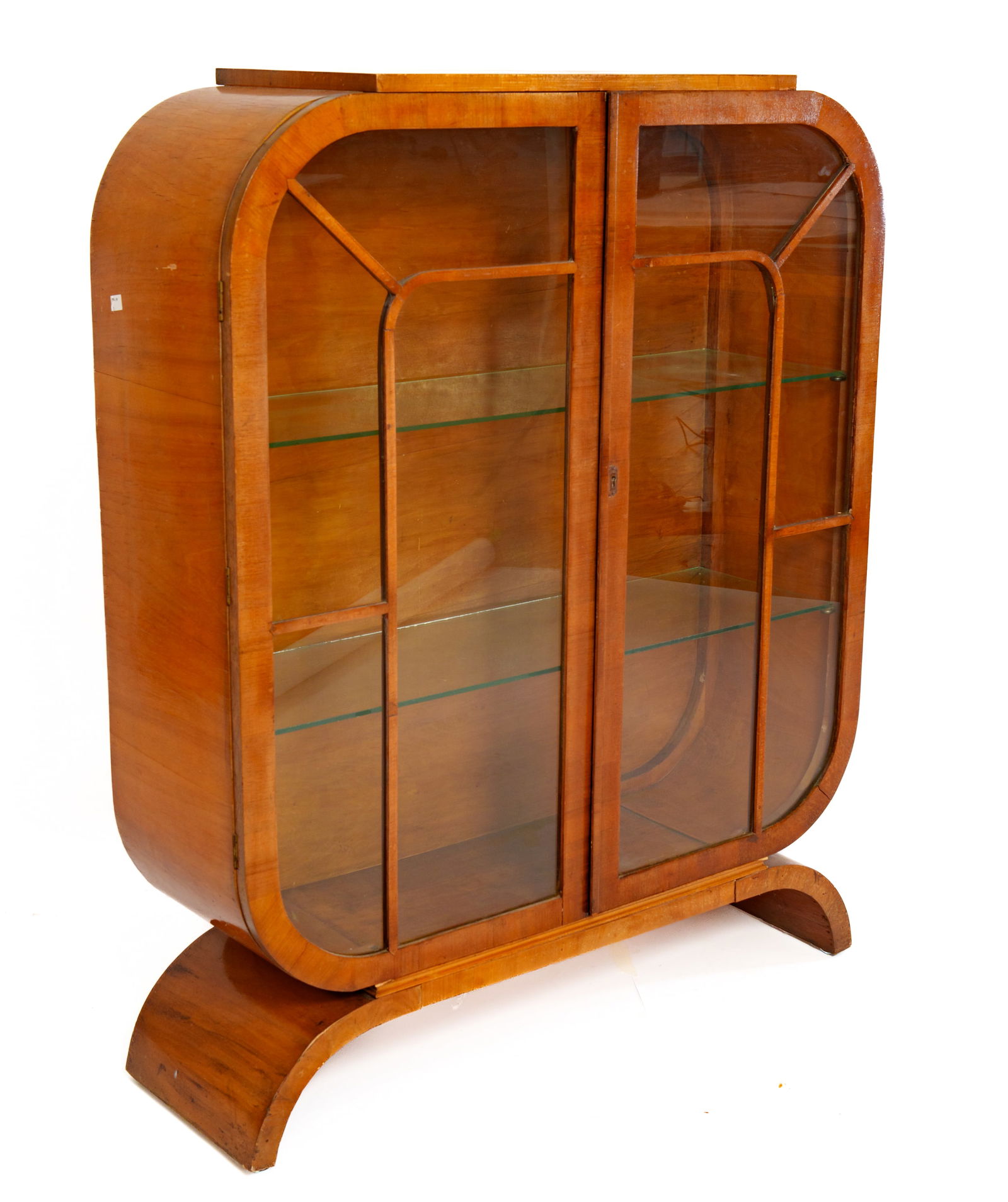 Art Deco Display CabinetAn Art Deco display cabinet with three doors and a shelved interior. 50-1/4in tall x 52-1/2in wide x 11-1/4in deep. | You have additional shipping options! Philadelphia Metro area delivery, NYC curbsiSee Sold Price