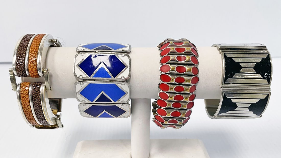 Blue Red and Green Enamel Dotted Textured Sterling Silver 925 Bracelet Set N68Rapid Estate Liquidators and Auction Gallery4.5(1.3k)$7016 hrs Left