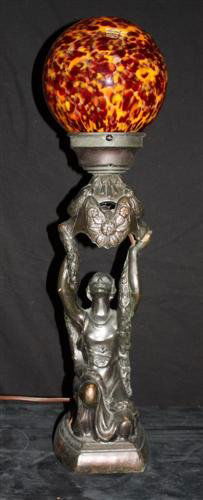 Art Deco Figural Lamp W/czech Sphere Globe