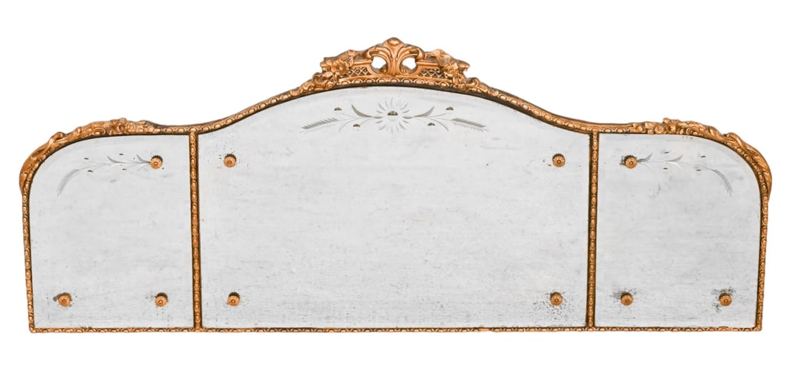 Art Deco Gilt Beveled Etched 3 Panel Mirror