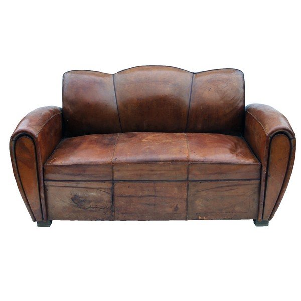 Art Deco Leather Club Pull Out Sleeper Sofa