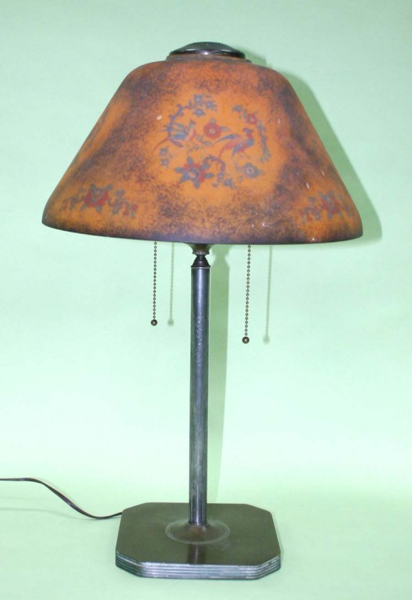 Art Deco Period Reverse Painted Lamp, Base Signed