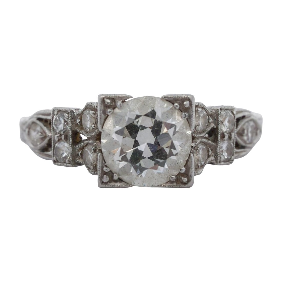 Art Deco Platinum Diamond RingArt Deco platinum and diamond ring, set in the center 1 with an old European-cut diamond weighing approximately 1.15 carats and with an estimated color and clarity grade of "I-J, VS1", within a domedSee Sold Price