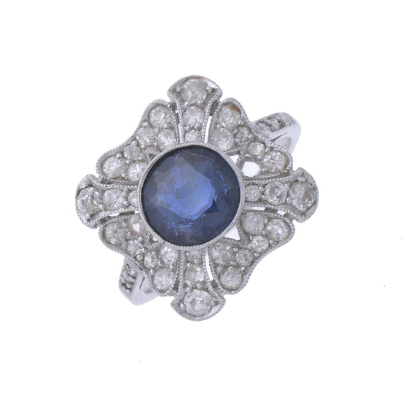 Art Deco Platinum Ring with 5.00 Ct Synthetic Sapphire and 20 DiamondsDiamond Depot4.3(11)$7402 days Left