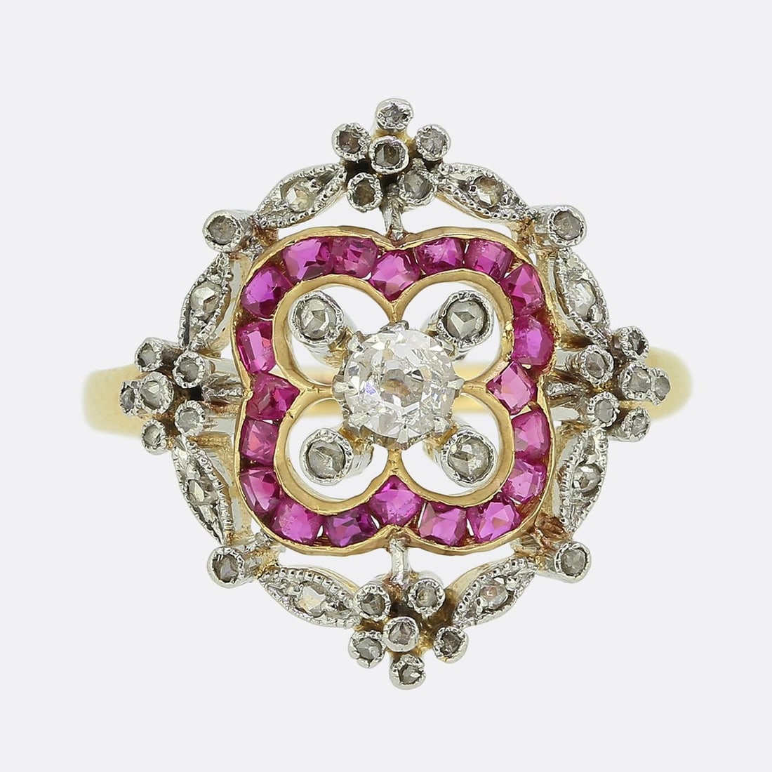 Sold18ct Gold Art Deco Diamond And Ruby St Square Cluster Ring (1.9g). J.18ct Gold Art Deco Diamond And Ruby St Square Cluster Ring (1.9g). J.See Sold Price