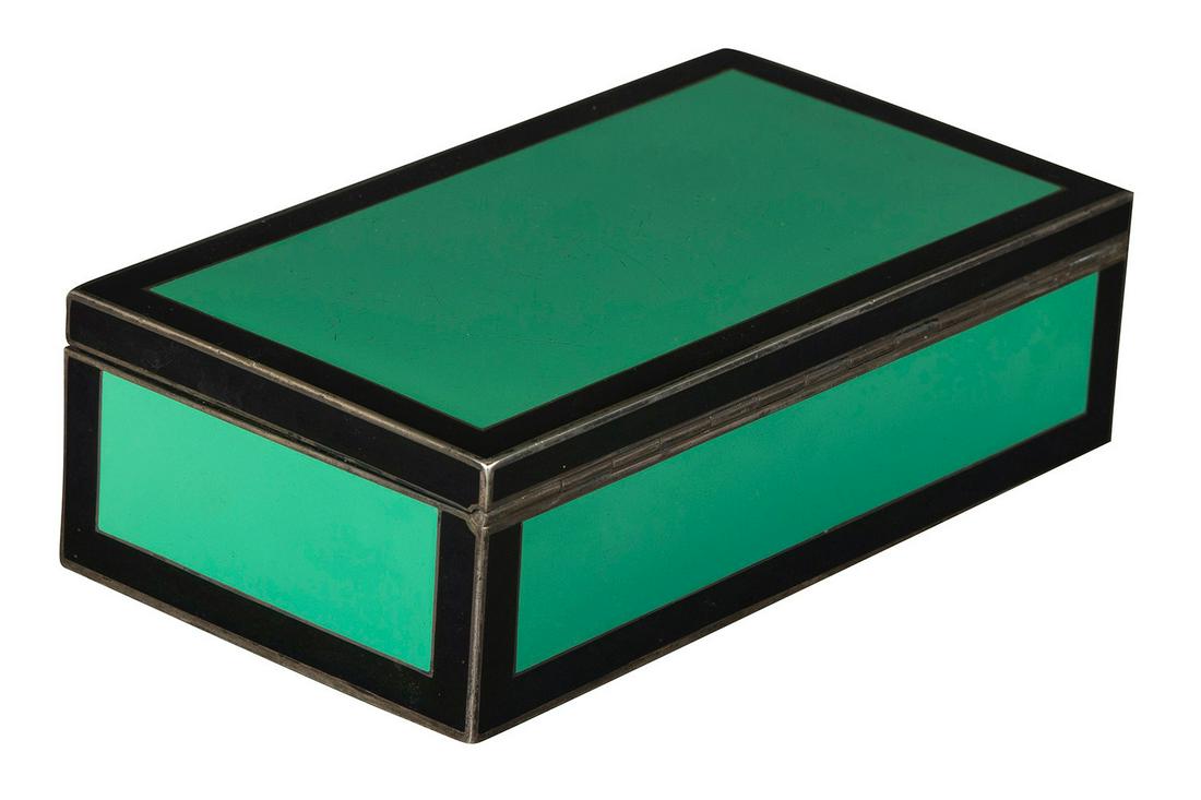 A Large Filigree, Ruby and Emerald-Mounted Malachite BoxMar 11, 2026Wilhelm Kåge (1889-1960) for Gustavsberg, Sweden. Square Art Deco lidded box in ceramic withVTG ART DECO STYLE ENAMEL METAL JEWELRY OR TRINKET BOX388 Lots AwayBirmingham Silver and Enamel BoxMar 11, 2026A 19TH CENTURY RUSSIAN GREEN GLASS CASKETMar 19, 2026Art Deco English T&S Sterling Silver & Shagreen Cigarette BoxMar 17, 2026Art Deco Silver and Enamel Cigarette CaseMar 13, 2026A GREEN HARD STONE PAINTED BOX, INDIA, 19TH CENTURY6 days LeftAntique fine guilloche enamel decorated sterling silver box. Octagonal form with green enamel panels22 hrs LeftArt Deco Mottled Bakelite Hinged BoxMar 07, 2026A 'jeweled' malachite jewelry box3 days LeftA large Art Deco sterling silver cigar boxMar 15, 2026Birmingham Silver, MOP and Jade BoxMar 11, 2026British Art Deco Tea Caddy or Tobacco Box, 1930s-40s.Mar 10, 2026Early 20th C. Silvered Bronze & Champleve Enamel Box4 days LeftSOLID MALACHITE BOXMar 08, 2026