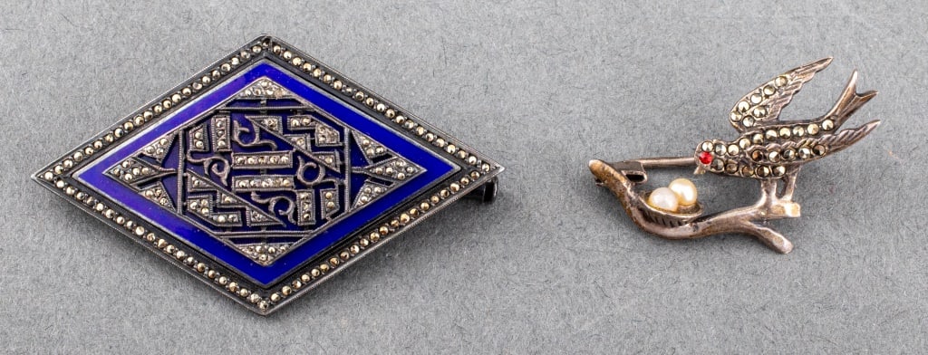 Art Deco Silver Marcasite Brooches, 2