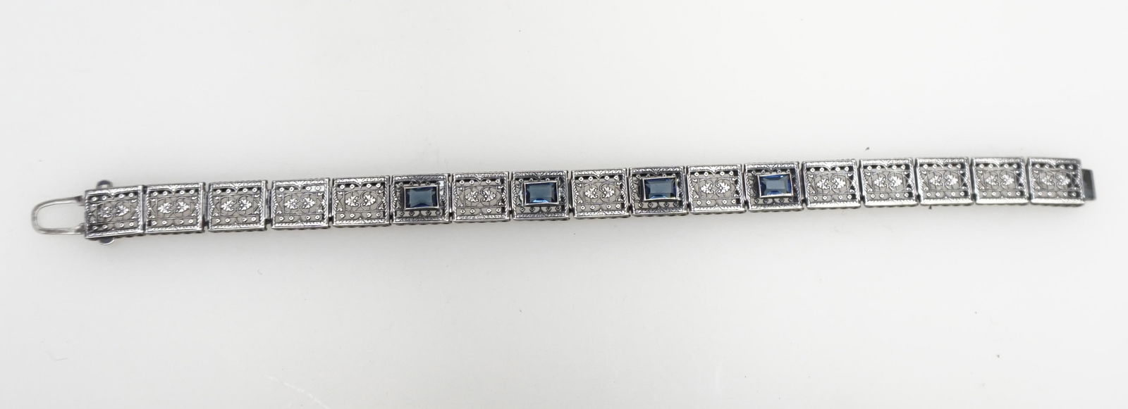 Art Deco Sterling Silver Filigree Bracelet with Blue Accents and Paste StonesCoral Gables Auction4.5(634)$5019 hrs Left