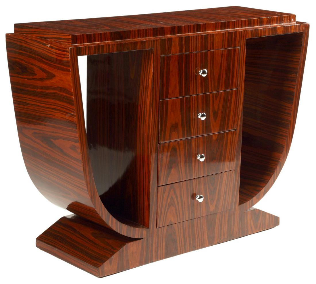 FRENCH ART DECO CREDENZA IN THE MANNER OF JEAN PASCAUD c. 1930, mirror glass, walnut veneer, wal...An Art Deco Hinged and Swivel-Top Mahogany Breakfast TableEliel Saarinen Inspired Streamline Moderne 6-Drawer DresserRestored Art Deco Stacked Rattan Highboy Dresser w/ MahoganyArt Deco Style Console Table Mid Century Modern Heavy Three Chrome LoopsArt Deco Hardwood Marble Top Bar CabinetFeb 06, 2026French Art Deco Marble Top Walnut Sideboard TableFeb 11, 2026An Art Deco-Style Mahogany Cabinet5 days LeftArt Deco Secretaire, Czechoslovakia, 1920sArt Deco Secretaire Bookcase, 1940sART DECO SIDE TABLE5 hrs LeftArt Deco Rosewood Canterbury End TableFeb 07, 2026Large Art Deco Shelving Unit & Cabinets, 3 PiecesArt Deco style fluted demilune cabinetFeb 19, 2026ART DECO-STYLE MAPLE BOWFRONT BUREAU 20th Century Height 35". Width 45". Depth 21".187 Lots AwayArt Deco Sideboard by Christian Krass with Ivory Inlay and Stone Top2 days Left