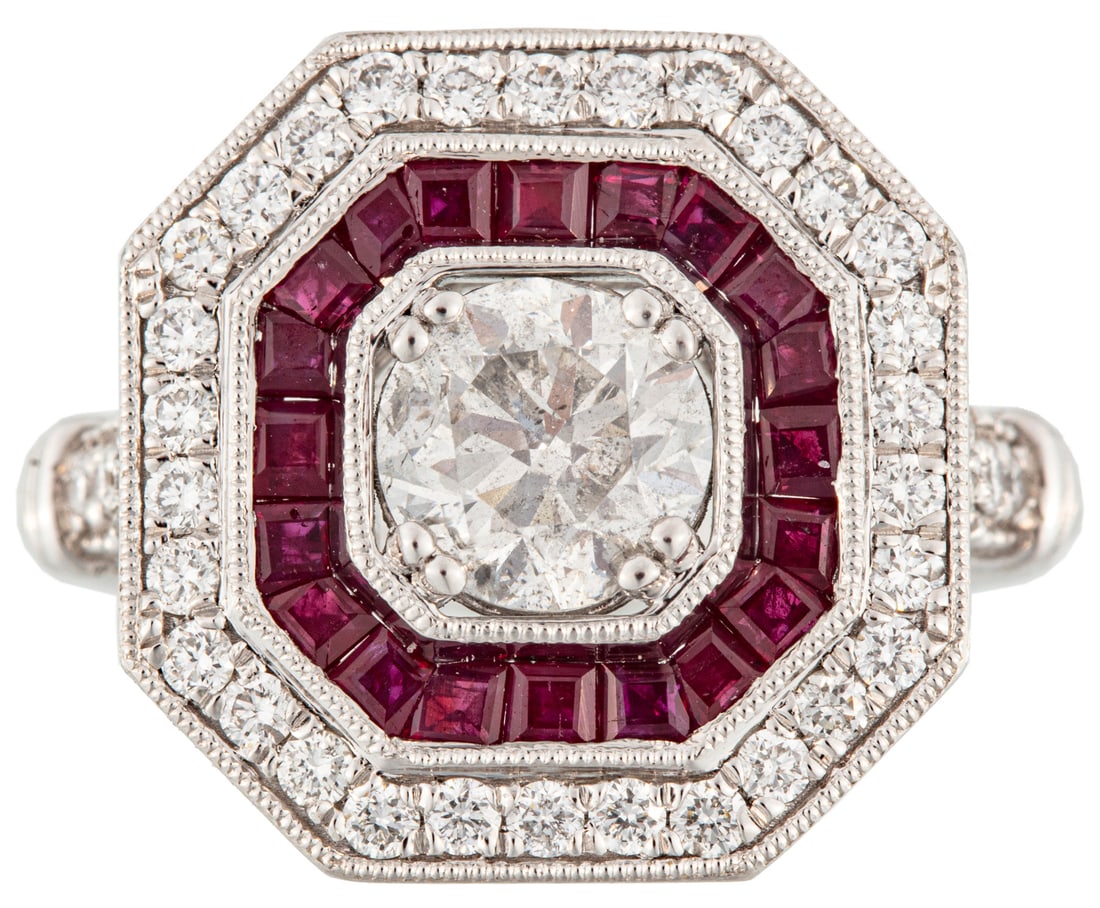 18K White Gold Ladies Ring with 1.51ct Natural Ruby and 1.33ct tw Adjacent DiamondsRiverside Galleries4.5(197)$505 days Left