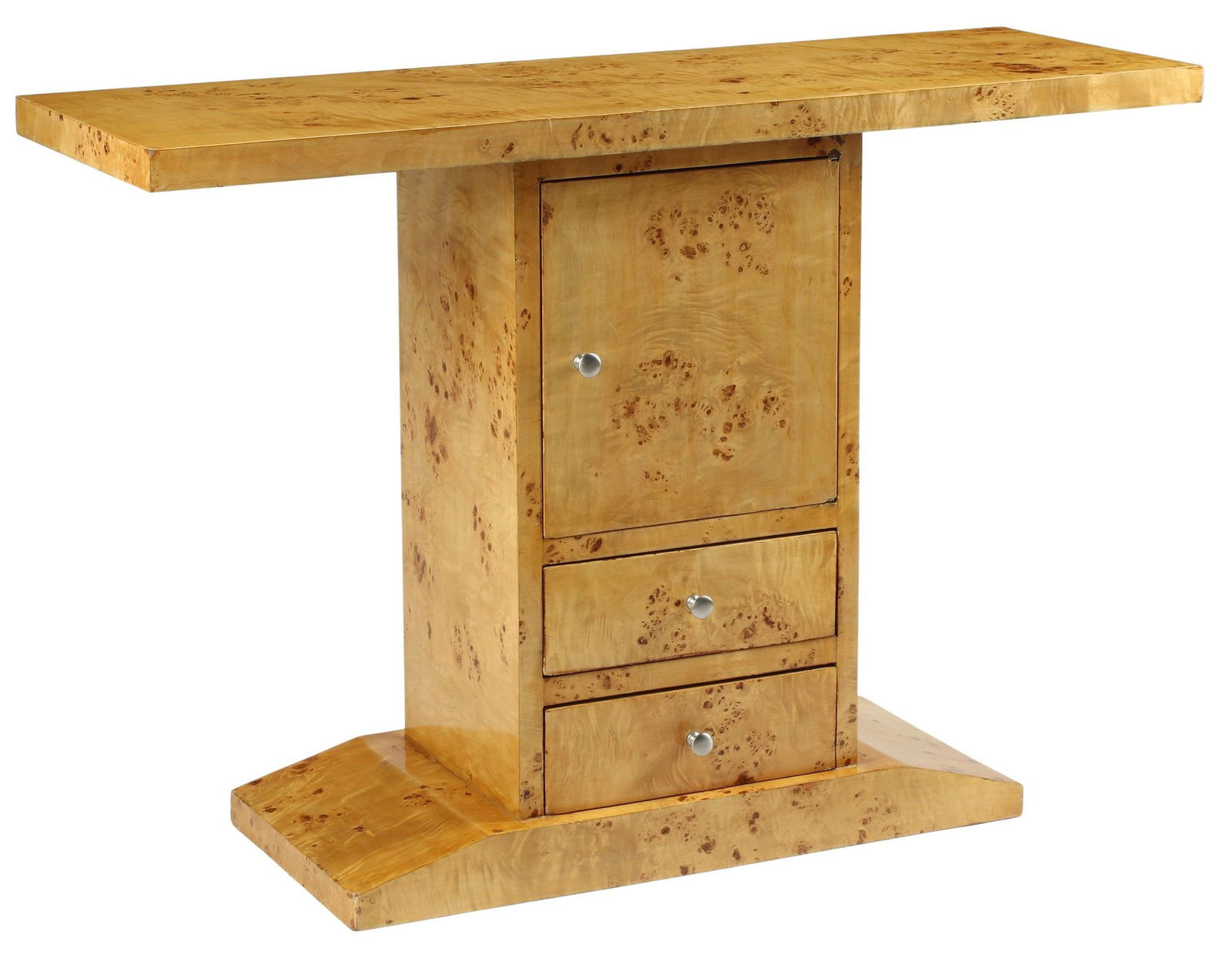 SoldArt Deco Style Burled Veneer 2 Drawer Console #1Art Deco Style Burled Veneer 2 Drawer Console / Hall Table - 35 in tall x 43 x 16See Sold Price