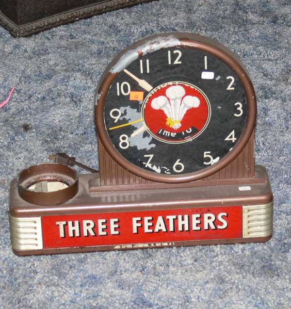 art deco Three Feathers whiskey clock/ lamp