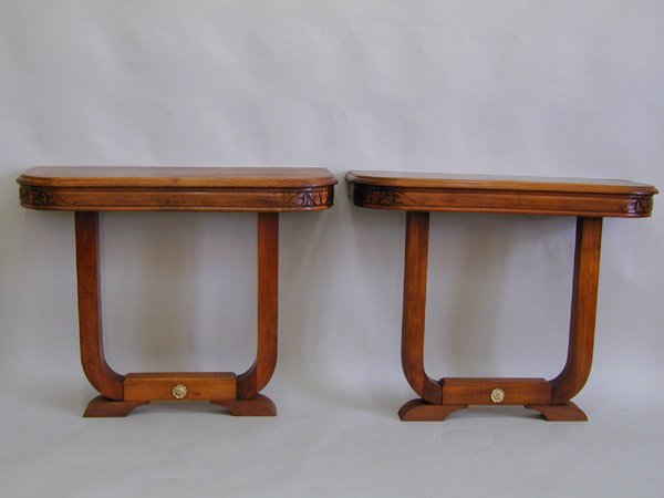 ART DECO Flip Top Moderne Hall Console Table. Exotic Wood Trim Top. Table opens to two part Walnut TART DECO Flip Top Moderne Hall Console Table. Exotic Wood Trim Top. Table opens to two part Walnut Top. Double "U" Form Base. Dimensions: Height: 30.5 inches, Width: 54 inches, Depth: 20 inches. --- -