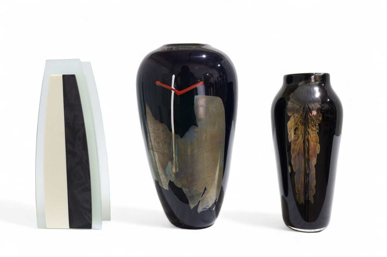 3pc Contemporary Studio Glass Vases. 1) Green Trapped Air Bubble Flared Rim Form. 2) White Cut to ClUniques and Antiques, Inc.4.7(865)$505 days Left