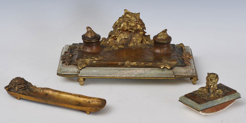 19th c. English Brass Inkwell & Writing Desk Set c.1880An Ornate Victorian Style Cast Brass Inkwell and Pen Tray4 days LeftFine Brass Ink Desk Stand3 days LeftArt Nouveau inkwell, European School, circa 1900Feb 25, 2026Gilt Bronze and Marble Desk Set, 19th c., H.- 3 in., W.- 12 in., D.- 10 in.2 days LeftVintage Decorative Antique Art Nouveau Brass Ink WellMar 22, 2026Bradley and Hubbard Art Nouveau Letter Holder Desk AccessoryMar 05, 20261890's Art Nouveau Bronze Slag Glass Desk Set Attributed to APOLLO STUDIOSMar 07, 2026French Desk Writing Set, Bronze and Enamel Champleve, Circa 1900.Mar 10, 2026Art Nouveau Metal Jewelry BoxMar 08, 2026Art Nouveau Bronze Ashtray & Match HolderMar 17, 2026Baroque-style Brass and Agate Desk Set2 days LeftAntique Victorian Brass Inkwell Desk Set Circa 1870-19004 days LeftBrass Desk/Table Articles (5), incl. Georgian CandlestickAntique Brass Neoclassical Style Double Inkwell1 hr LeftMagnificent F. Linke Kingwood & Gilt Bronze Desk, 19th C.2 days Left