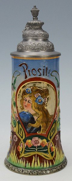 LOT OF GERMAN POTTERY, STEIN / MUG2 days LeftBohemian Art Nouveau Portrait Vase, in the Manner of Amphora, c.1900Mettlach Art Nouveau Floral Design Stein w InlayMar 21, 20261/4L Mettlach Art Nouveau Hops Design SteinMar 21, 2026Mettlach Art Nouveau Cameo Couples Style SteinMar 21, 20262-1/2L Art Nouveau Design SteinMar 21, 2026Mettlach Bavaria Art Nouveau Design SteinMar 21, 20262L Mettlach Art Nouveau Cameo Stein w Inlay LidMar 21, 2026Art Nouveau Floral Eight Sided Stoneware SteinMar 21, 2026Mettlach Art Nouveau Cameo Etched Couples SteinMar 21, 2026Mettlach Mosaic Floral Design SteinMar 21, 2026Mettlach Bavarian Woman at Table w SteinMar 21, 2026A CLOISONNE ENAMEL VASEMar 08, 20261L Art Nouveau Design Stoneware SteinMar 21, 2026Riemerschmidt Art Nouveau Floral Footed SteinMar 21, 2026Heraldic Shield & Verse SteinMar 21, 2026