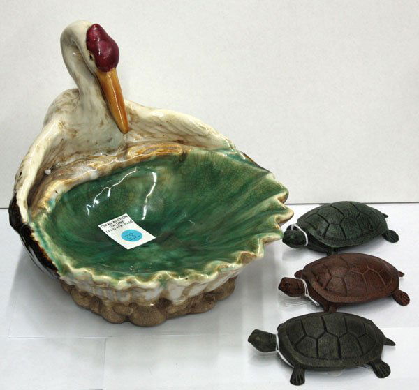 SoldUnique Majolica Pottery Bird Bath Center BowlUnique Majolica Pottery Bird Bath Center Bowl. size: 6h 12wSee Sold Price