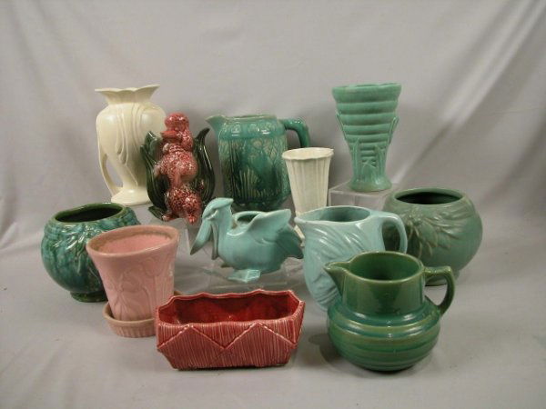 Art pottery group, mostly McCoy, some with damage