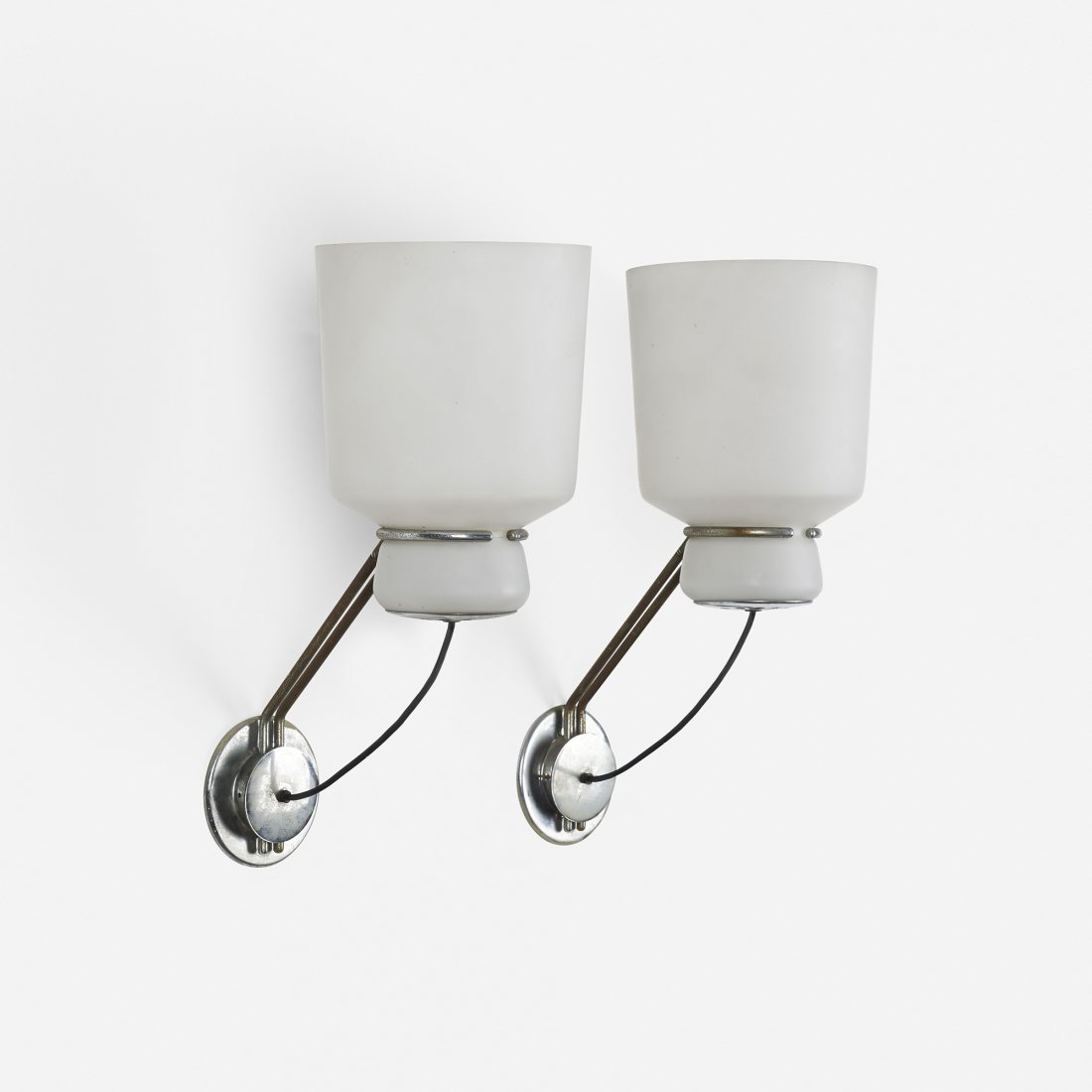 Parzinger Style, Monumental Pair of Chrome Wall Light/Sconces