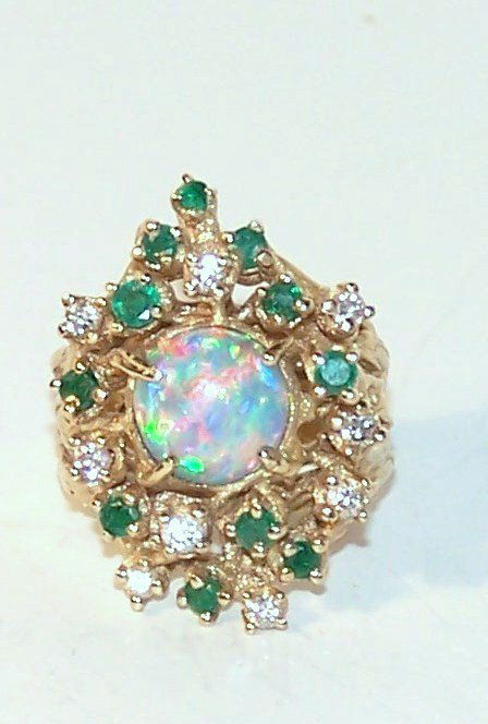 Arthur King 14K Opal Diamond Emerald Ring