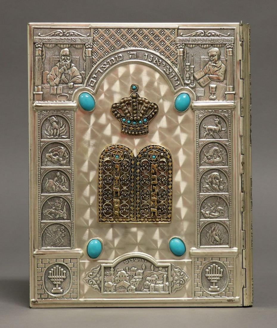 SoldJUDAICA BOOKS, PASSOVER HAGGADAH BY ARTHUR SZYKA lot of four antique and vintage Jewish religious books. Torah Prophets and Scriptures, published in Amsterdam, a 2015 photocopy of 17th-century edition, embossed metal hardcover with turquoise cabocSee Sold Price
