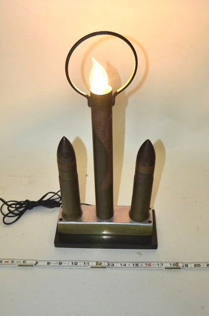 SoldADMIRAL DEWEY'S LAMP Early 20th Century Total height 15.25". Length 8.75".ADMIRAL DEWEY'S LAMPEarly 20th CenturyCopper and brass font in the form of a naval artillery shell supported by four cast iron crossed cannon legs. Font impressed on one side "Admiral Dewey's LamSee Sold Price