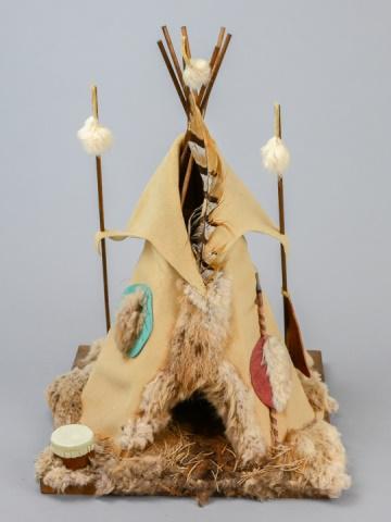 Artisan Cherokee Decorated Leather Tepee Model