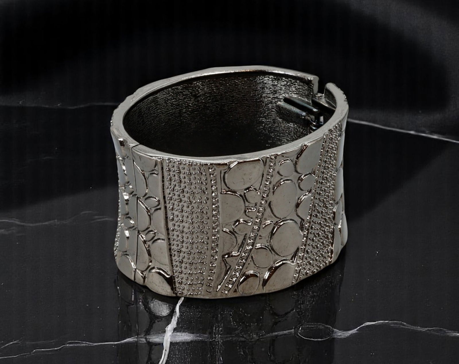 ARTISTIC MODERN STYLE: Bangle - Textured Abstract Pattern, Deep Silvertone Finish (7 cm)