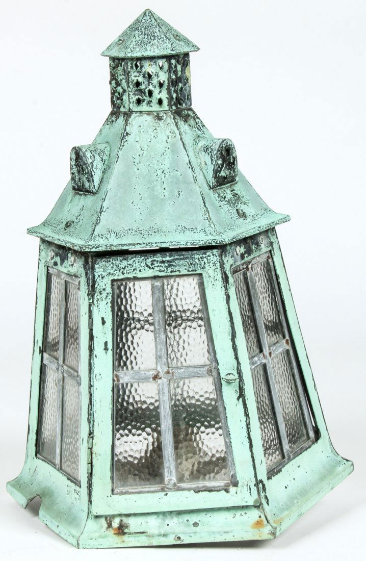 An antique three-light hexagonal verdigris copper lantern with a pagoda-shaped roofAlexandra Howard Inc4.3(2)$5,0006 days Left