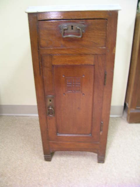 ARTS AND CRAFTS MARBLE TOP 4 DRAWER CHERRY TABLE