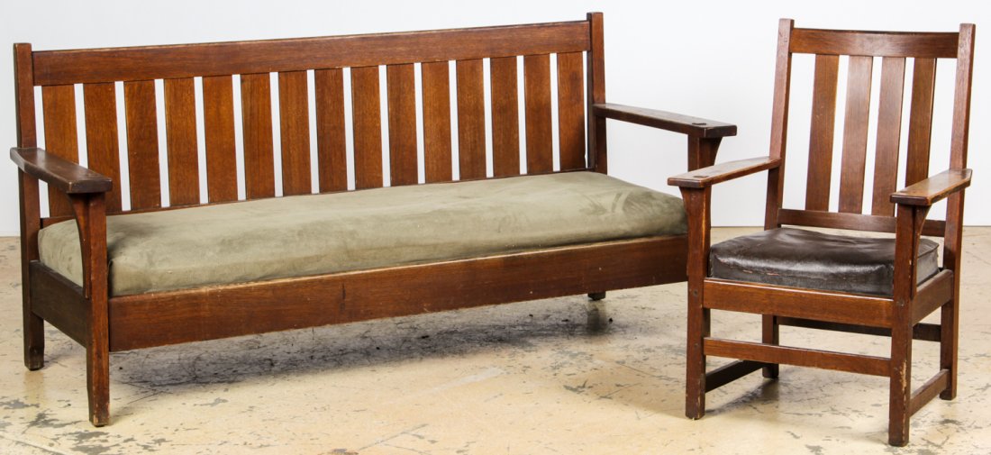 Scandinavian vintage or antique country style pine storage bench, known as a "settle". Seat lifts up2 days LeftModernist 3-Strand 3/4 Pretzel "Kauai" 3 Seat Rattan SofaArts & Crafts / Mission Style Oak Even Arm Settle, 34" x 72" x 30"Apr 14, 2026Lifetime Furniture Co Slatted Bench Settle c19103 days LeftGUSTAV STICKLEY (1858-1942) OAK FLAT-ARM 'MORRIS' CHAIR, MODEL 332Mar 27, 2026RUSH SEAT BENCHMar 28, 2026Woven Brown Leather Mahogany BenchApr 07, 2026Gwyneth Paltrow | Vintage Osvaldo Borsani Lounge Chair7 days LeftAntique Mission Oak Style Bench by Lifetime FurnitureMar 31, 2026Harden Oak Wavy Arm Slatted Rocker c19103 days LeftKITTINGER COLONIAL WILLIAMSBURG CHIPPENDALE STYLE MAHOGANY CAMELBACK SOFA. 34.5"h. 71"w. 30"d. Seat21 hrs LeftJean Royere Style, 'St. Barts' SofaMar 28, 2026Miniature Spindle Barrel Back Courting ChairApr 01, 2026Antique wooden 8 ft. Railroad Bench, with 28 spindles in back and slatted wooden seat. This earlyMar 28, 2026MISSION STYLE SETTLE SOFA/ BENCH4 days LeftChippendale Mahogany Settee3 days Left