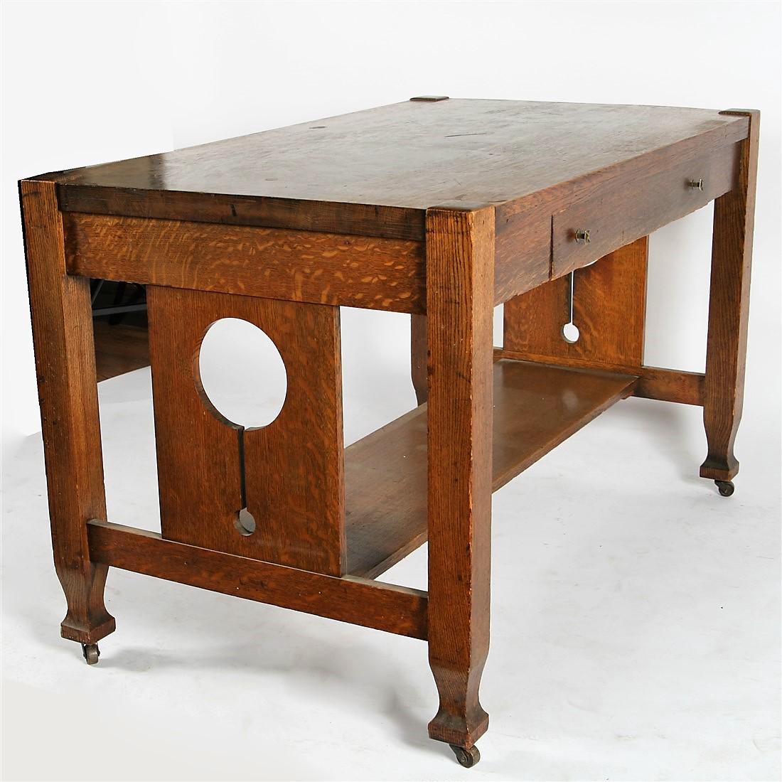 Arts & Crafts Style Oak Library Table