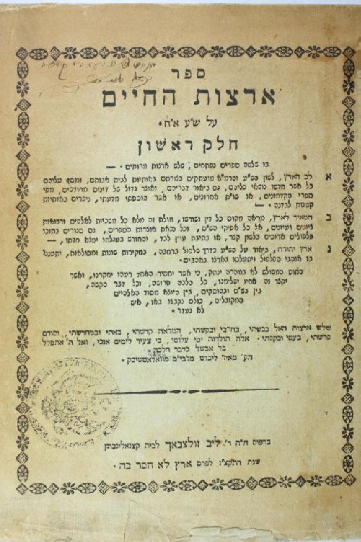 Artzot Ha'Chaim (the Malbim) - First Edition -
