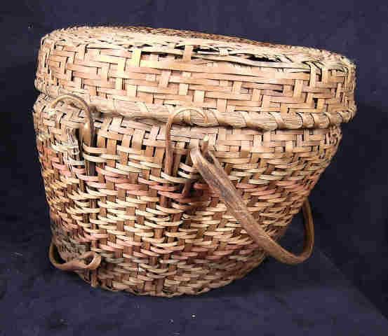 SoldPAINTED LIDDED BASKETPAINTED LIDDED BASKET LATE 19TH C , ASH, MAINE, LIKELY PENOBSCOT TRIBE. RARE SIZE , PERFECT CONDITION, ORIGINAL RED PAINT WITH THIN VARNISH OVERCOAT. NO BREAKS OR LOSSES. 7 X 7See Sold Price