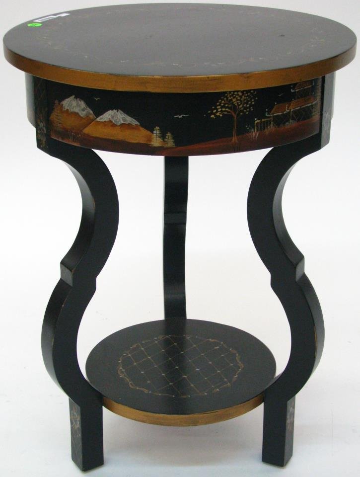 (4) ENGLISH REGENCY STYLE BLACK LACQUER CHINOISERIE NESTING TABLESFeb 21, 2026Regency, Macassar, Ebony, Brass Inlay, Center Table, France, 1970sJapanese Lacquered Two-Tier Side Table, Ca. Mid 20th C., H 28.5" W 15.75" Depth 12"Feb 19, 2026Antique Black Lacquer Night Table w DrawerFeb 22, 2026Japanese Carved Black Lacquer Painted Coffee Table4 days LeftCUSTOM PAINTED OVAL COFFEE TABLEFeb 22, 2026A Set of Regency Style Black Lacquer Chinoiserie Nesting TablesChinoiserie Black and Gold Faux Bamboo Tray TableFeb 21, 2026Chinoiserie Style Designer French Antique Black Lacquered and Gilt Low Table7 days LeftMaitland Smith French Black Crackle Painted Occasional Table4 days LeftMaitland Smith French Black Crackle Painted Occasional Table3 days LeftChinese Black Lacquered Altar TableFeb 26, 2026Chinese Black Lacquer Low Table4 days LeftPAINTED OCTAGONAL STANDFeb 22, 2026Vintage Painted Chinese Round Wood TableFeb 18, 2026Chinoiserie Decorator Coffee Table Black Chinese Chippendale Design13 hrs Left
