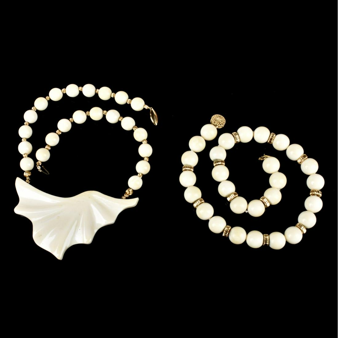 2 necklaces. 1) Large graduated barrel form amber bead necklace. Largest: 24mm length. 97 grams. 2)Tremont Auctions4.6(313)$1007 days Left