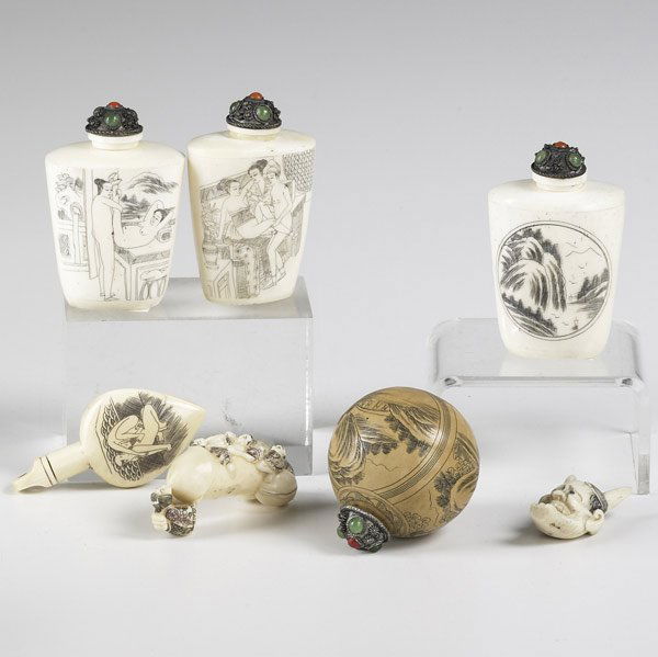 antique Chinese carved bone tall snuff bottle with erotic scenes and wood stopperLake Lanier Antiques LLC4.4(25)$50Mar 02, 2026