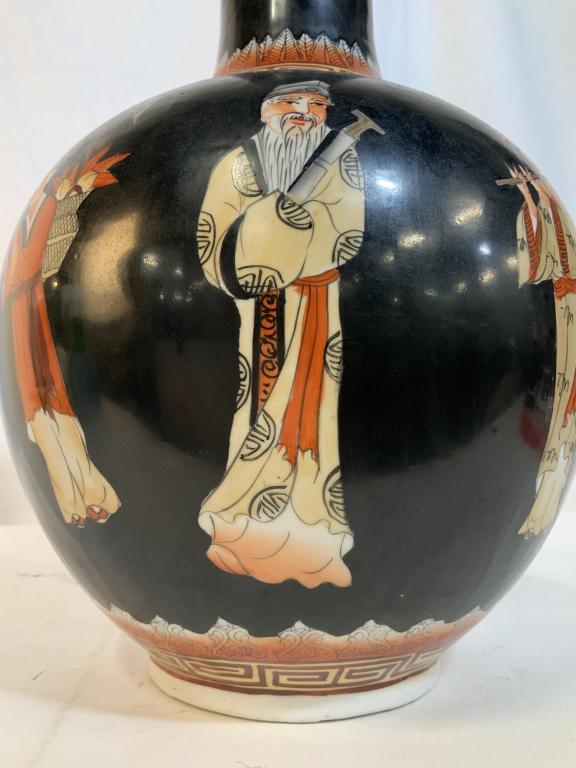 Asian Figural Painted Ceramic Vase