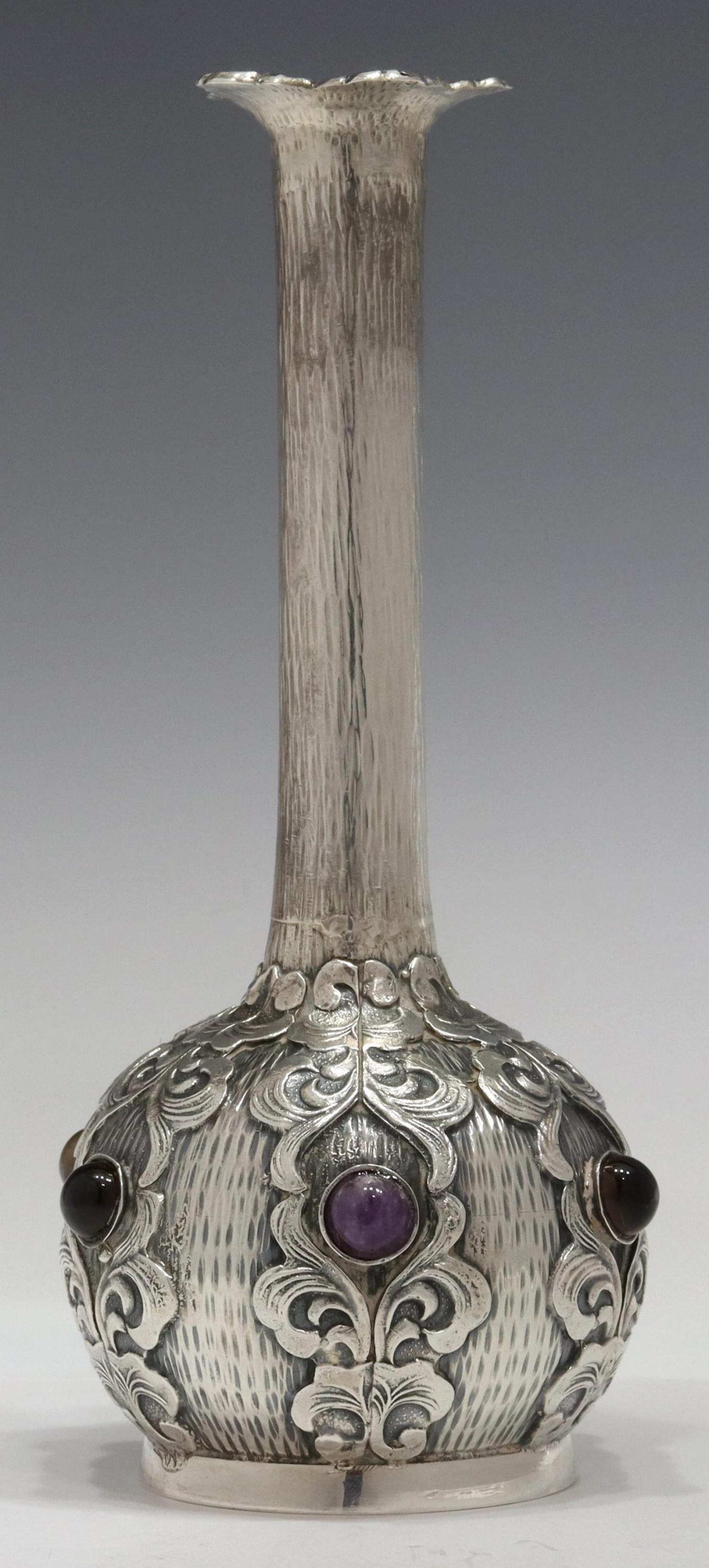 ASIAN GEM-SET FINE SILVER BUD VASE