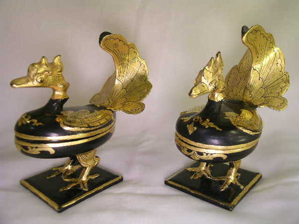 ASIAN GILT BLACK LACQUER FIGURAL BIRD BOXES