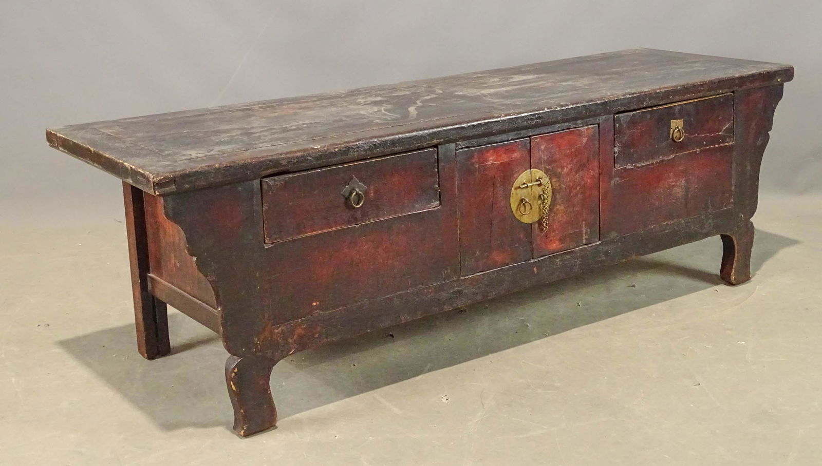 SoldAsian TableAsian low table having (3) drawer and paneled sides. 45 3/4" x 18 3/4" x 17 3/4" Ht..See Sold Price