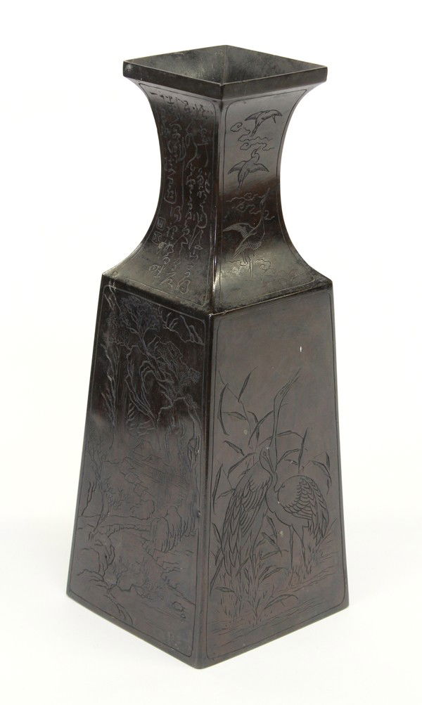 A BLACK POTTERY TWO-HANDLED VASE WITH CARVED DECORATION, LIANGZHU CULTUREMar 08, 2026Tall Chinese Bronze Sculpture of Vase3 days LeftAn Exquisite Bronze Inlaid Gold Character and Story Pattern VaseMar 06, 2026JAPANESE IKENOBO SCHOOL BRONZE IKEBANA VASE, MEIJI PERIOD3 days LeftQing Qianlong Period Gilt-Bronze Archaistic Taotie-Pattern Square Vase5 days LeftAn Exquisite Jasper Flower Pattern with poem Brush PotMar 13, 2026Chinese Ceramic Clay Brown Vase Shape Flower PlanterAntique Bronze Flat Pot with Silver Inlay StatueFeb 24, 2026Japanese Meiji Period Birds In Relief Bronze VaseFeb 28, 2026Antique Chinese/Japanese Bronze Vase w/Detailed Relief MotifsMar 01, 2026A Korean Bronze Vase with Inlaid Bird and Floral Decoration1 day LeftExquisite Handmade Bronze Vase with Gold Inlay and Inscriptions – Chinese Antique OrnamentFeb 24, 2026A Rare Bronze Plum Blossom,Orchid Bamboo and Chrysanthemum Pattern Brush PotMar 11, 2026Vntg Embossed Floral Brass Vase1 day LeftAsian Black Mother of Pearl Inlay VaseMar 05, 2026Japanese Bronze Vase With Twin Fish Ear5 days Left